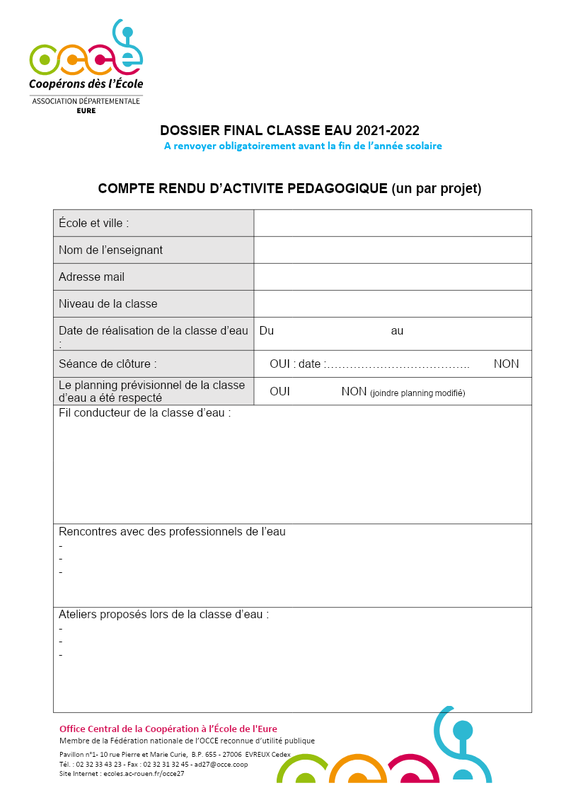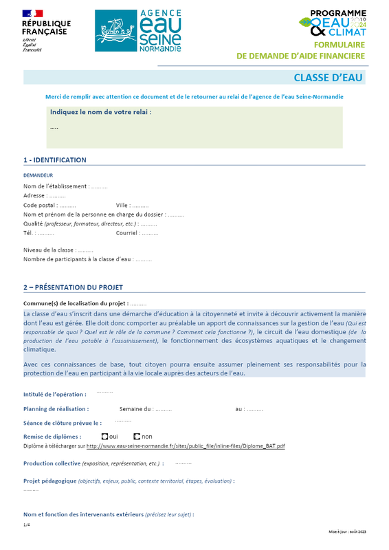 Formulaire Aide Classe D Eau Pour Une Ecole